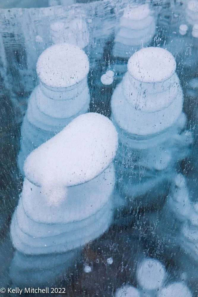 The methane bubbles at Abraham Lake are fascinating to explore and photograph.
