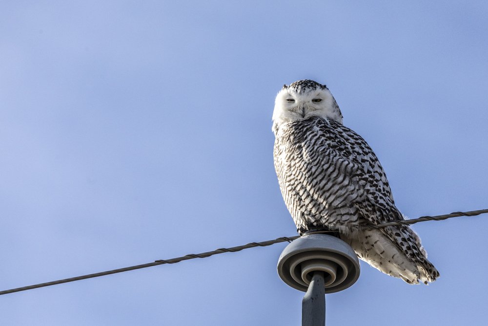 A good friend of mine and I went out for a day of birding and it was a fantastic day out!! While out, we found 2 female snowies, one wwaayyy out in a field, so we went for a bit of a walk to get a bit closer. Not to close mind, just enough to get a better view, a little closer and a better background. And then Snowy number 2, hhiiggghh up on a pole but at least she looked down to see what the heck we were doing!!