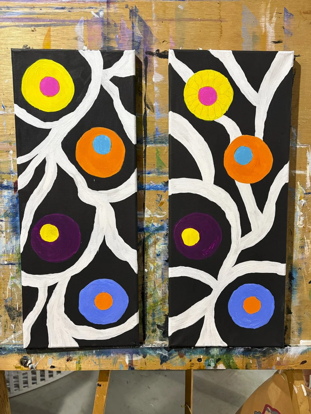 Progress Report - still working these 2 paintings. Trying to decided colour theme and design. I still don’t know yet but its coming along nicely!!